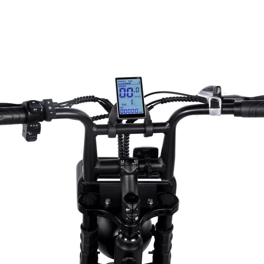 De H9 is ontworpen met comfort en veiligheid in gedachten. De brede 20-inch banden geven extra grip op elk terrein, van zand tot modder, en de hydraulische schijfremmen bieden superieure controle en remkracht, zelfs bij nat weer. De voorvorkvering zorgt voor een soepele rit, wat dit model uitermate geschikt maakt voor zowel ruig terrein als de drukke stadsstraten.